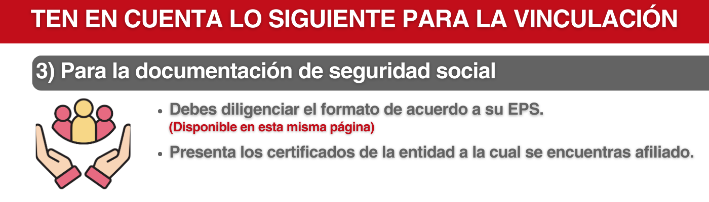 Para completar la documentación de afiliación al sistema de seguridad social, debes presentar los siguientes documentos: